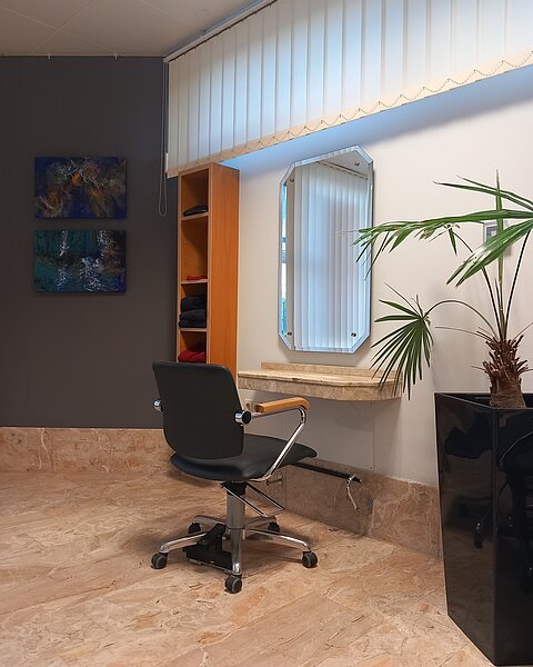 Unser Salon ist hell, großzügig und bietet ein freundliches Ambiente.